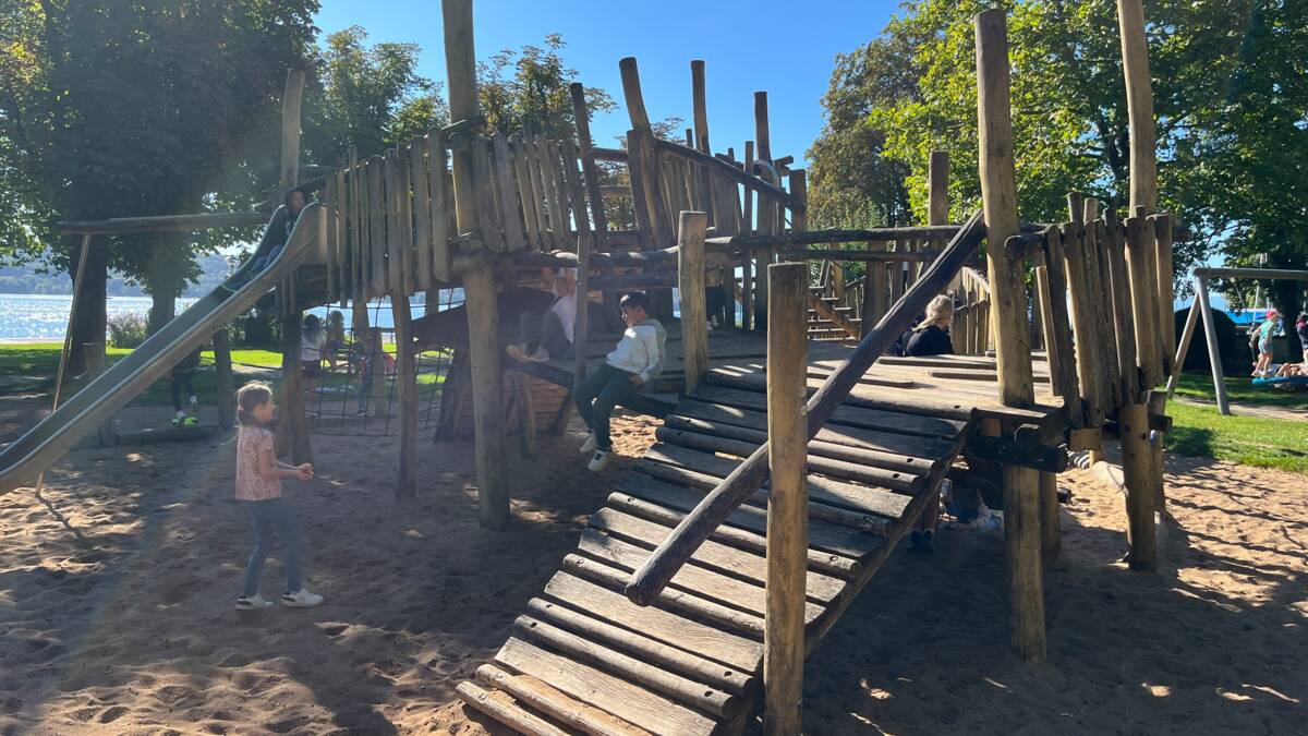 Weil die S-Bahn so verspätet war, dass sie unser eigentliches Ziel gar nicht anfuhr, konnte unserer guten Laune auch keinen Abbruch tun. Spontan entschieden wir um, schon in Starnberg aus und spazierten gemütlich an der Seepromenade entlang zu einem schönen, großen Spielplatz gleich am See. Dort konnten die Kinder kreativ am Piratenschiff oder an den Geräten spielen, erste Kastanien suchen oder Käfer bestimmen.