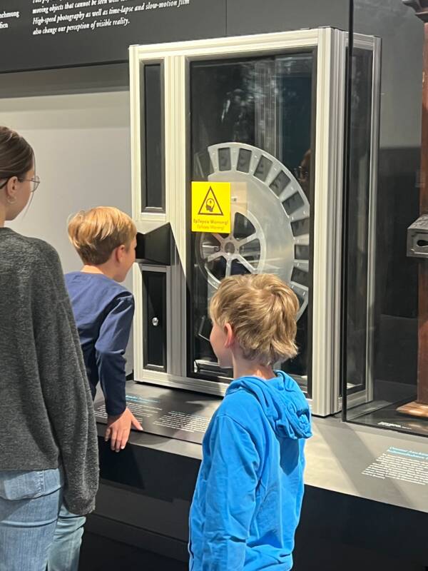 Anfangs erfuhr die Klasse etwas über die Geschichte der Fotografie, des Filmens und des Kinos. Im Anschluss sahen sich die Kinder die Ausstellung über Bild und Film an, bei der sie Suchaufträge erhielten und Fragen beantworten mussten.