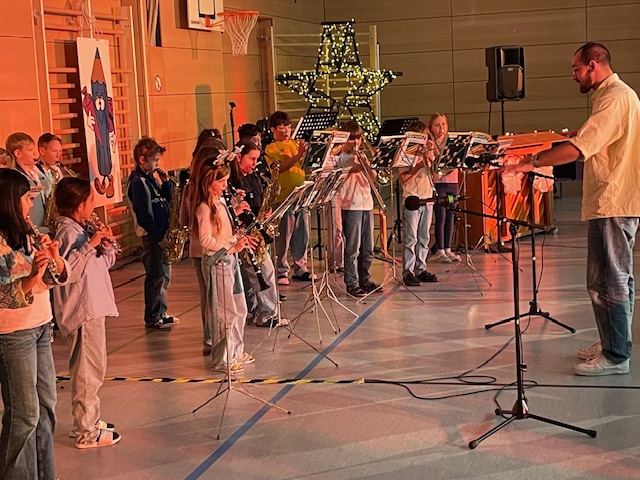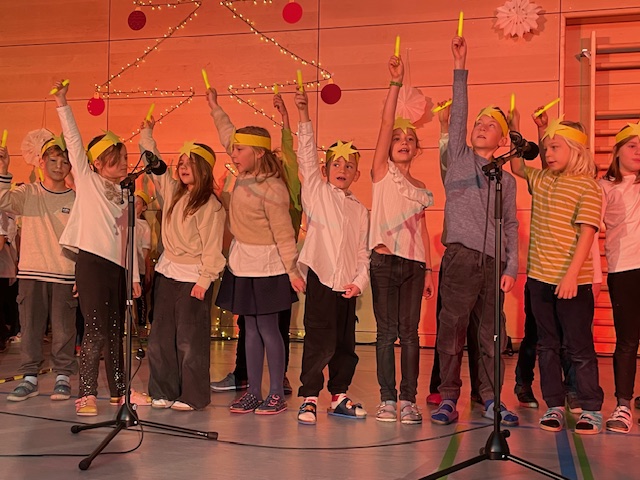 Am 19. Dezember 2025 fand an unserer Grundschule wieder die berührende Friedenslichtfeier statt. Jede Klassenstufe steuerte einen liebevoll einstudierten Beitrag bei. Die Veranstaltung begann mit der ersten Darbietung unserer neu eingerichteten Bläserklasse. Es folgten Tänze und Lieder mit passenden Bewegungen, die durch liebevoll gestaltete Accessoires die festliche Stimmung unterstrichen. Die Klasse 2b und 4b brachten die schwedische Tradition des Santa Luciafestes in unsere Turnhalle! Ein Ereignis Schwedens, dass das Licht im dunklen Winter symbolisiert, wodurch die Darbietung perfekt zu unserer Friedenslichtfeier passte. Die Ton- und Lichttechnik setzten bei allen Aufführungen zusätzliche Akzente und verliehen dem Abend eine besondere Atmosphäre.