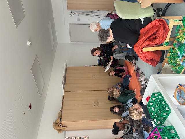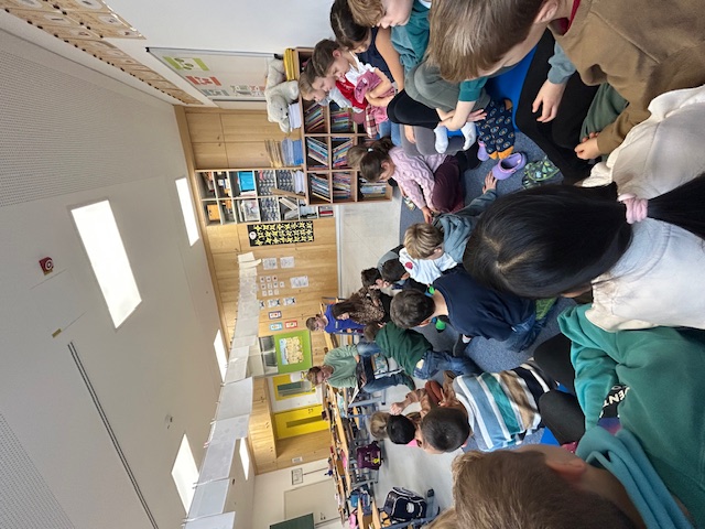 Ein Höhepunkt war der Besuch unserer Schüler bei den Kindergartenkindern der Spielkiste. Mit großer Aufregung und Freude lasen die älteren Kinder den Jüngeren vor und sammelten erste Erfahrungen als kleine „Lesementoren“. Auch viele Eltern und Lesepaten folgten der Einladung und kamen in die Klassen, um den Schülerinnen und Schülern vorzulesen oder gemeinsam in Bücherwelten einzutauchen.