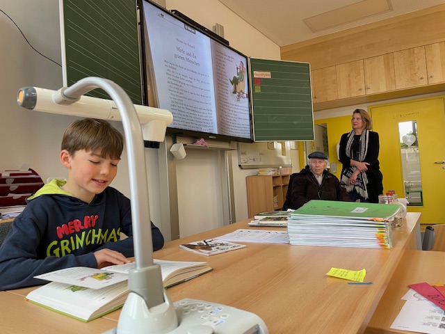 Besonders bereichernd war zudem der Austausch mit den Bewohnerinnen und Bewohnern des Altenheims. Einige von ihnen kamen mit unserer Sozialpädagogin Frau Lala zu uns, um vorzulesen, andere lauschten aufmerksam den Geschichten, die unsere Schüler vortrugen. Dieser generationenübergreifende Austausch machte den Tag für alle Beteiligten zu einem ganz besonderen Erlebnis.