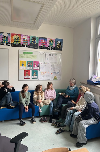 Am diesjährigen Vorlesetag herrschte in unserer Grundschule eine besonders lebendige und warme Atmosphäre. In allen Klassen fanden vielfältige Aktionen rund ums Vorlesen statt. Besonders freuten wir uns über den Besuch zweier ehemaliger Kolleginnen: Frau Greifoner und Frau Langfeldt kehrten – inzwischen im Ruhestand – für diesen besonderen Anlass zurück und begeisterten die Kinder mit liebevoll ausgewählten Geschichten.