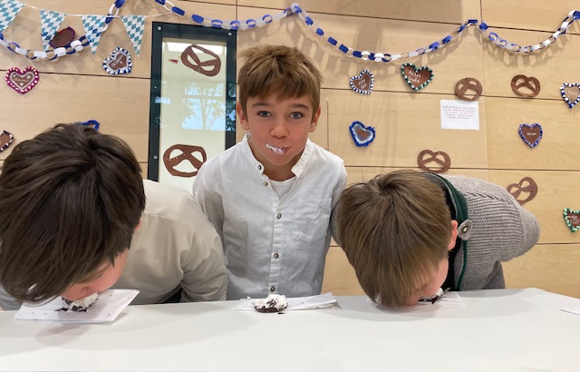 Bei den Spielen traten Mitarbeiter der Schule gegen die Kleinen an. Maßkrugstemmen, Schokokussessen, Rodeln, Stopptanz, Bodyshake-Challenge und gemeinsames Tanzen… es blieben keine Wünsche offen! Wobei die Kinder am Ende als klare Sieger der „Gaudispiele“ hervorgingen.