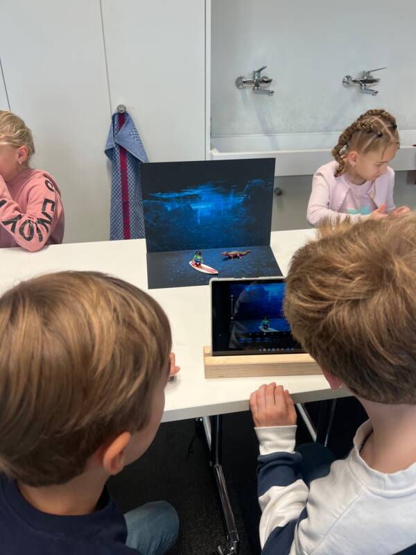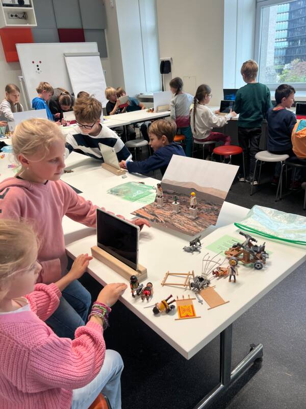 Danach wurden sie selbst zu Regisseuren: Zu zweit durften sie mit Playmobilfiguren und Utensilien, Hintergründen und Tablets Stop-Motion- Filme drehen, die am Schluss alle gemeinsam angeschaut wurden. Die Ergebnisse waren toll und teilweise auch sehr lustig.
