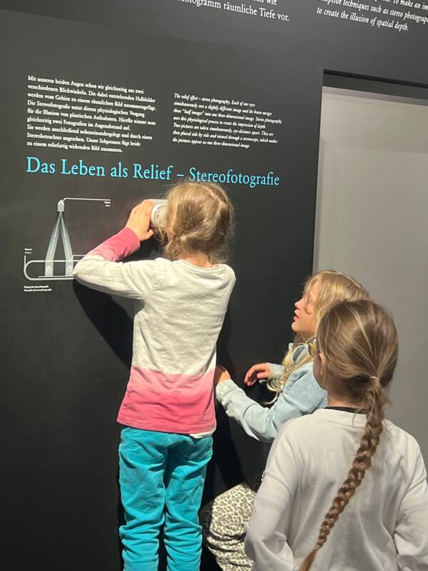 Anfangs erfuhr die Klasse etwas über die Geschichte der Fotografie, des Filmens und des Kinos. Im Anschluss sahen sich die Kinder die Ausstellung über Bild und Film an, bei der sie Suchaufträge erhielten und Fragen beantworten mussten.