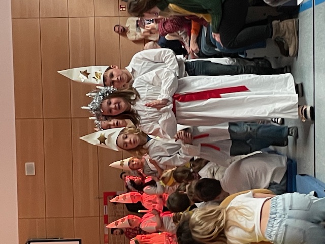 Am 19. Dezember 2025 fand an unserer Grundschule wieder die berührende Friedenslichtfeier statt. Jede Klassenstufe steuerte einen liebevoll einstudierten Beitrag bei. Die Veranstaltung begann mit der ersten Darbietung unserer neu eingerichteten Bläserklasse. Es folgten Tänze und Lieder mit passenden Bewegungen, die durch liebevoll gestaltete Accessoires die festliche Stimmung unterstrichen. Die Klasse 2b und 4b brachten die schwedische Tradition des Santa Luciafestes in unsere Turnhalle! Ein Ereignis Schwedens, dass das Licht im dunklen Winter symbolisiert, wodurch die Darbietung perfekt zu unserer Friedenslichtfeier passte. Die Ton- und Lichttechnik setzten bei allen Aufführungen zusätzliche Akzente und verliehen dem Abend eine besondere Atmosphäre.