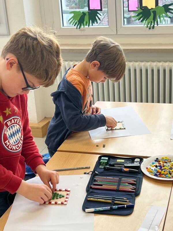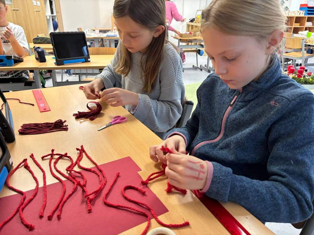 In der ersten Dezemberwoche fanden an unserer Schule die diesjährigen Projekttage statt – ganz unter dem Motto Weihnachtszeit. Zahlreiche Projektgruppen boten den Kindern kreative Möglichkeiten, sich auf die bevorstehenden Festtage einzustimmen. Mit großer Begeisterung wurde gebastelt und gewerkt: Weihnachtsanhänger entstanden, aus Holz bauten einige Kinder Engel und kleine Spiele, Futterglocken für Wintervögel wurden gestaltet, Kerzen gezogen, Mosaikkunstwerke entstanden, es wurde geknüpft und gefädelt. Auch gedruckte Weihnachtskarten, frisch gebackene Plätzchen und viele weitere kleine Kunstwerke sorgten für vorweihnachtliche Stimmung.